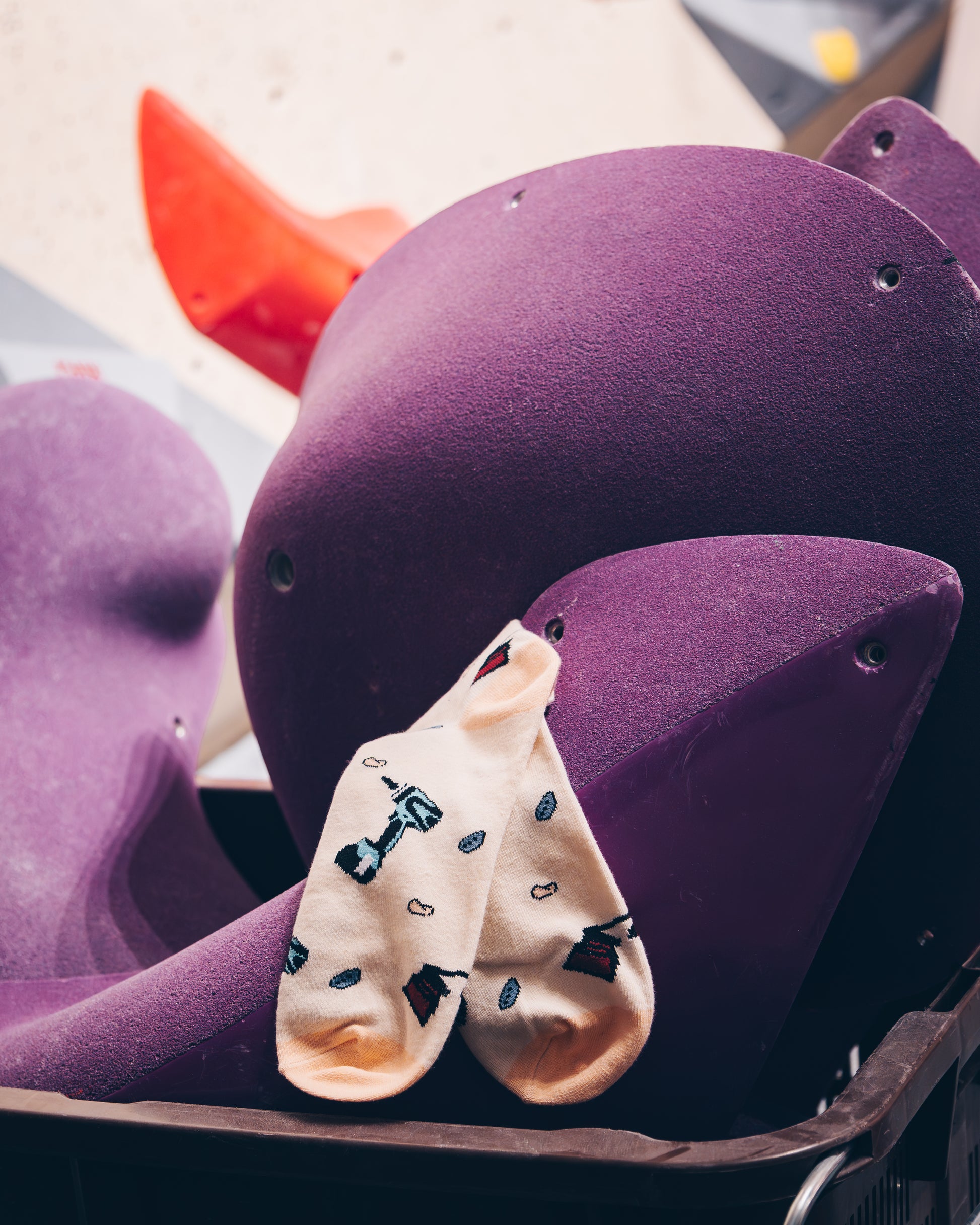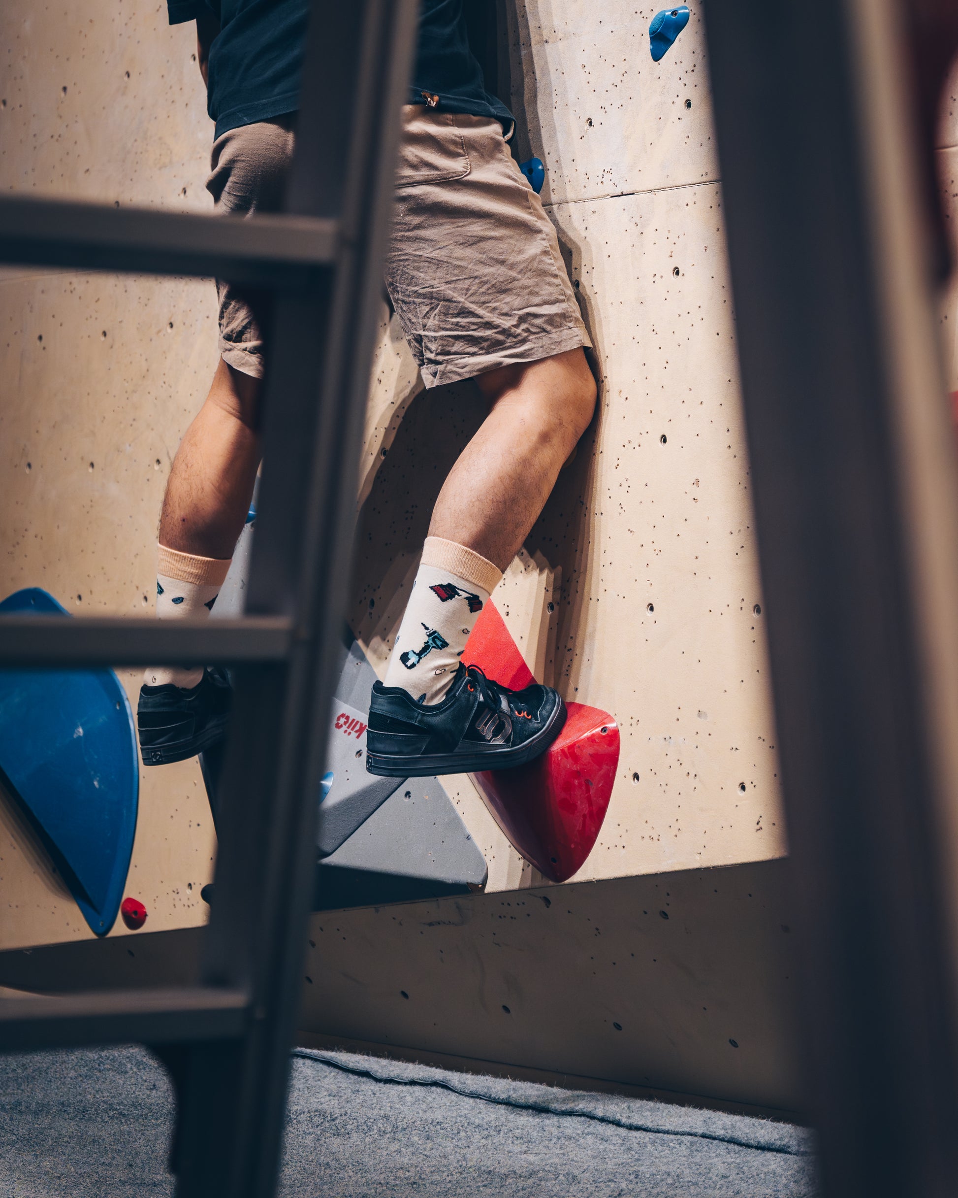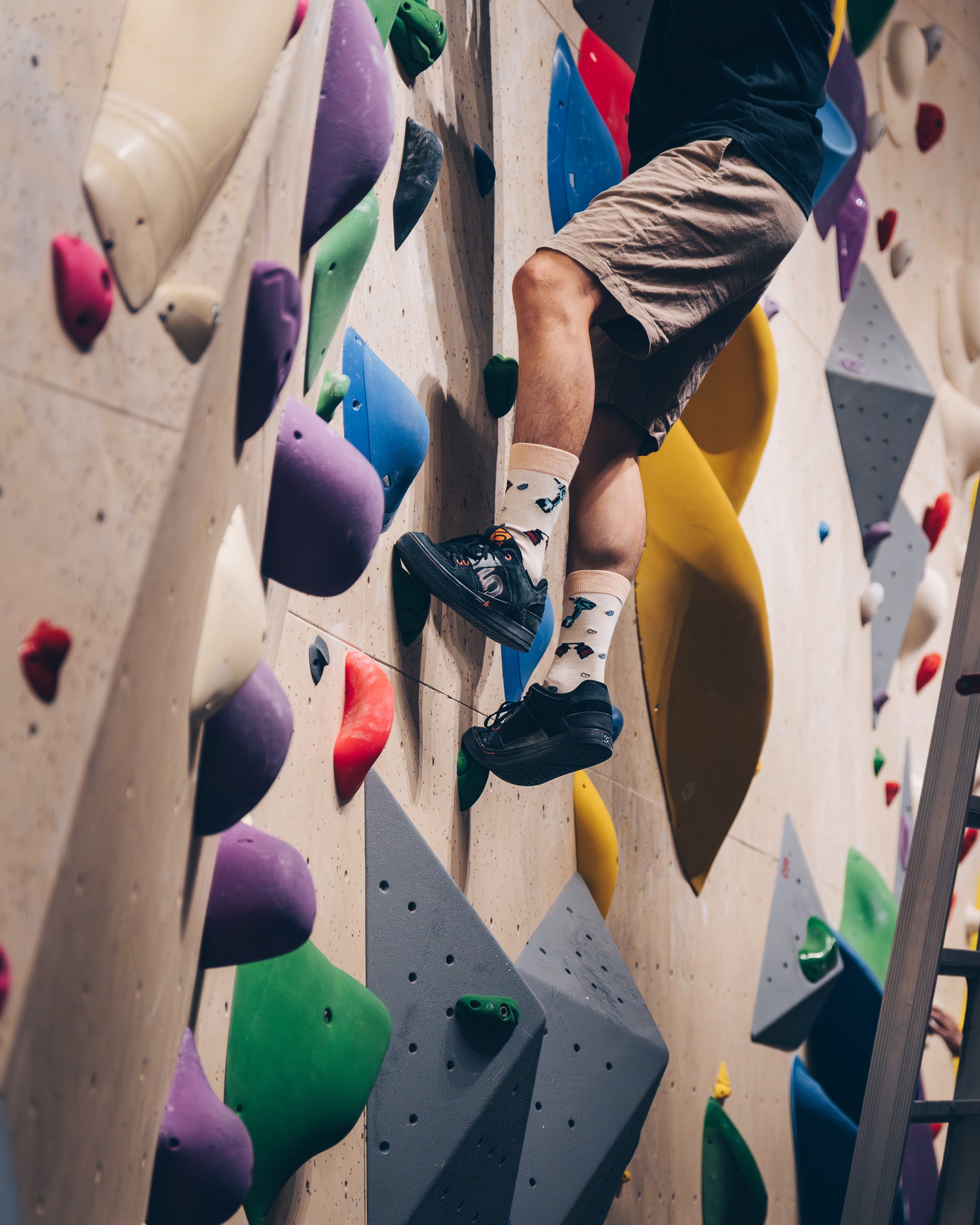 Our Setting Socks are a cozy shoutout to the unsung heroes behind the wall. Designed for early mornings, dusty gym floors, and well-earned rest at the end of the day. Soft, comfy, and stitched with a little send energy.